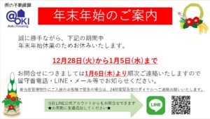 誠に勝手ながら、下記の期間を冬季休暇とさせていただきます。