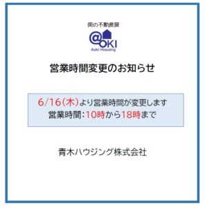 誠に勝手ながら、6月16日より営業時間を変更させていただきます。