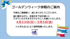 ◇◇ゴールデンウィーク休暇のご案内◇◇