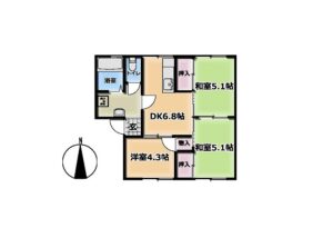 3DKの和室2部屋・洋室1部屋の間取りになります♩