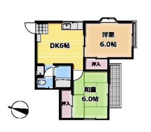 2DKのお部屋は静かな住環境にあり全居室6帖以上になりますので