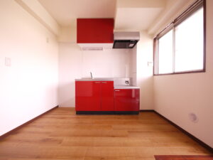 『串田ビル』赤いキッチンのあるおしゃれなお部屋♩