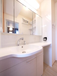 洗面台も独立していて朝の忙しい時間も使いやすく◎