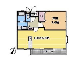 1LDKの間取りになりまして、