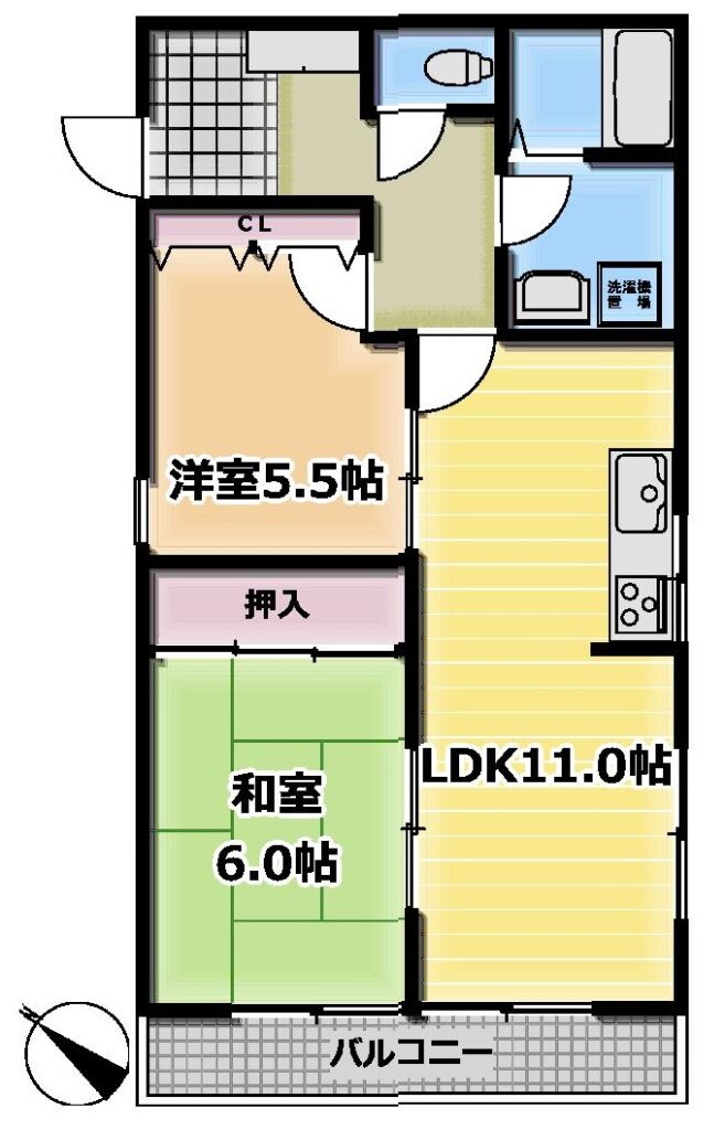 家族でも広々と使える、2LDKのおへや!