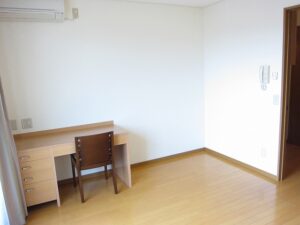 机とかも備え付けであるので、ごはんをたべたり、勉強したり、
