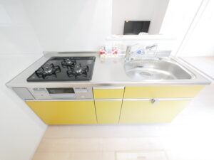 システムキッチン3口コンロ!調理スペースもあっていいですね👨🏻🍳👩🏻🍳🍳