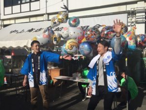 私たちはというと、当社代表と私の上司を合わせた三人に加えて、地元中学校の生徒さんたちと、風船売りをしておりました!!