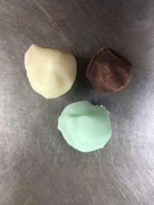 白いあんこと青いあんこを混ぜて色をぼかします。