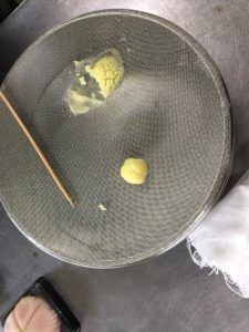 濾し器で細かいあんこにして、竹串で中央に設置して完成!