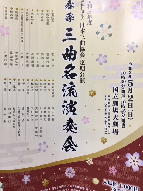 私出演予定だった、5月の国立劇場公演が中止になりました。・°°・(>_<)・°°・。