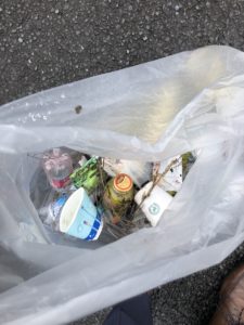 ペットボトル・ビン・缶全部で20個くらいは拾ったかと思います。