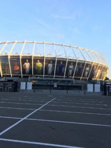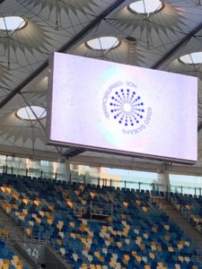 初日の目玉?「スポーツ宮殿(体育館らしい)」と「オリンピックスタジアム」へ案内してもらいました。