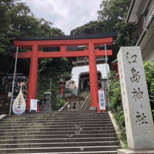事前に地元に住んでいる方から聞いていましたが、江の島内は車の進入禁止らしいです。(オリンピック開催の為)