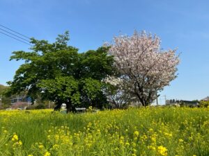 うまい具合に時期を合わせられると、黄色の菜の花にピンクの桜が