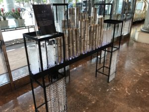 ランドマークタワー入り口に七夕のオブジェがあります。