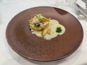 パイ生地の上にツブ貝や甘えびがのっていて、おいしかったです🐟
