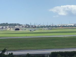 展望台から基地を離着陸する軍用機を見ながら時間調整。