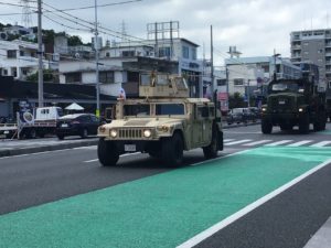 国道58号線を走る軍用車輌!沖縄ならではの光景・・。