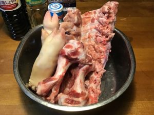 生まれて初めて買った、豚のガラ、ゲンコツ、豚足・・。
