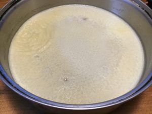 初回の調理以降、業務用寸胴鍋を手に入れ、豚骨の分量を増量するなどし、
